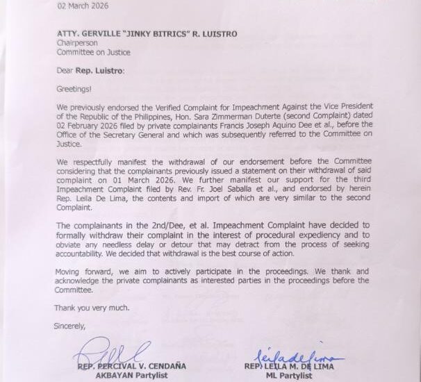 Complainants withdraw 2nd impeachment case vs VP Duterte, shift support to third complaint