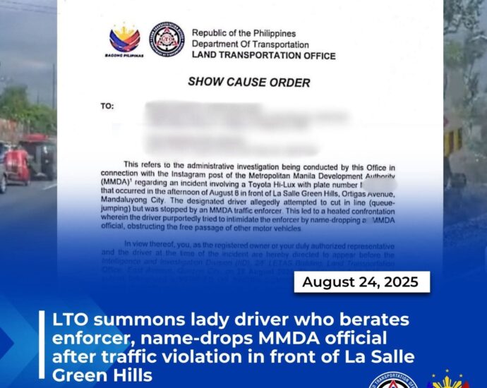 LTO flags Toyota van after driver intimidates MMDA enforcer near La Salle Green Hills 2025-08-25 By: Almar Danguilan On: August 25, 2025