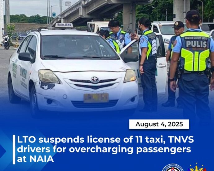 LTO cracks down on abusive airport drivers; 11 licenses suspended for overcharging at NAIA 2025-08-05 By: Almar Danguilan On: August 5, 2025