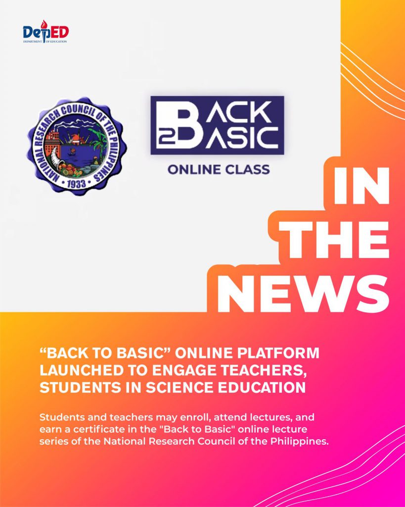 The Department of Education (DepEd) encourages teachers and learners to participate in the National Research Council of the Philippines’ (NRCP) “Back to Basic” (B2B) online lectures.