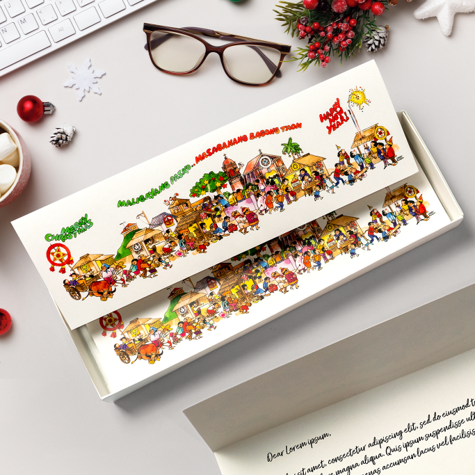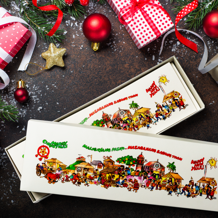 Showcasing Alcala’s iconic work from his Slice of Life cartoons, “Remembering the Joy of Paskong Pinoy” is a set of cards that embodies the spirit of generosity and community that is the hallmark of Filipino culture.